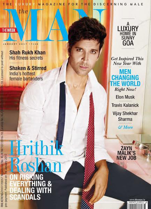 Hrithik Roshan has graced the January issue of ‘The Man’ magazine and it is totally drool-worthy. He is wearing a white shirt with navy blue pants and an unmade tie. The caption on the cover reads, “Hrithik Roshan- On risking everything and dealing with scandals.”